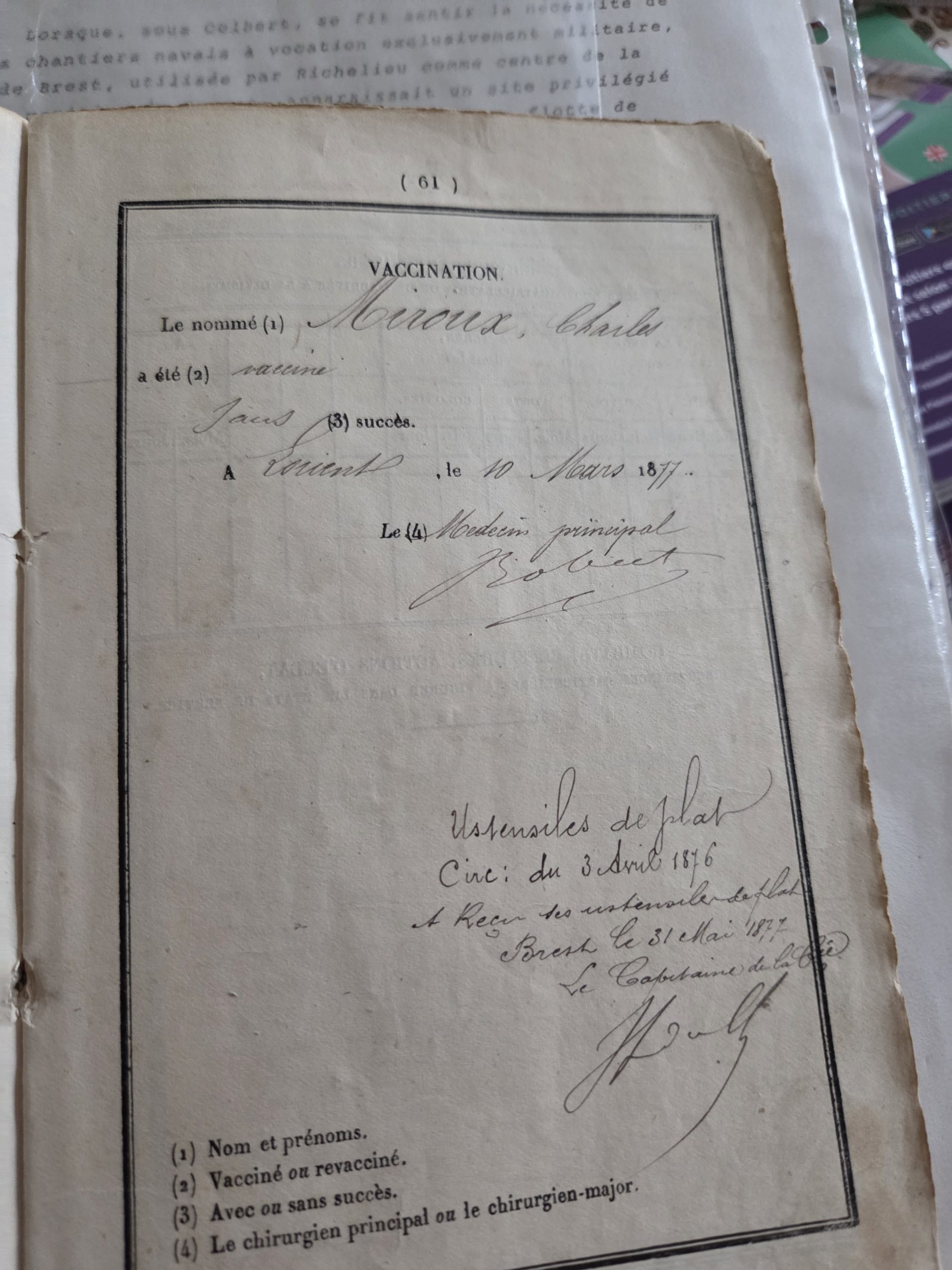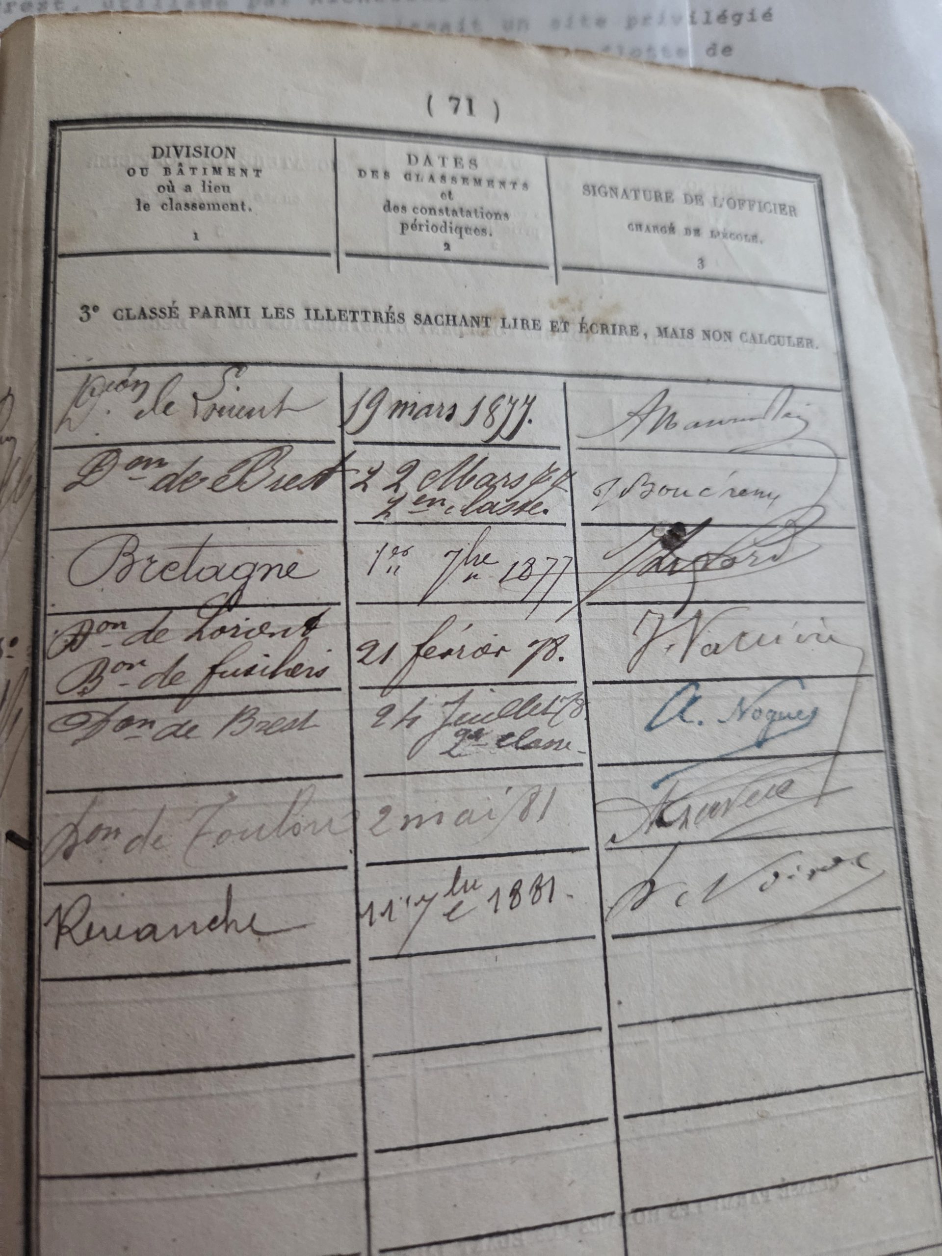 📄 Registre matricule (classe 1876 – Quimper)