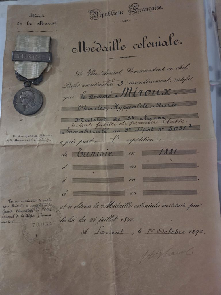 Mention de participation à la campagne de Tunisie et attribution de la médaille commémorative.