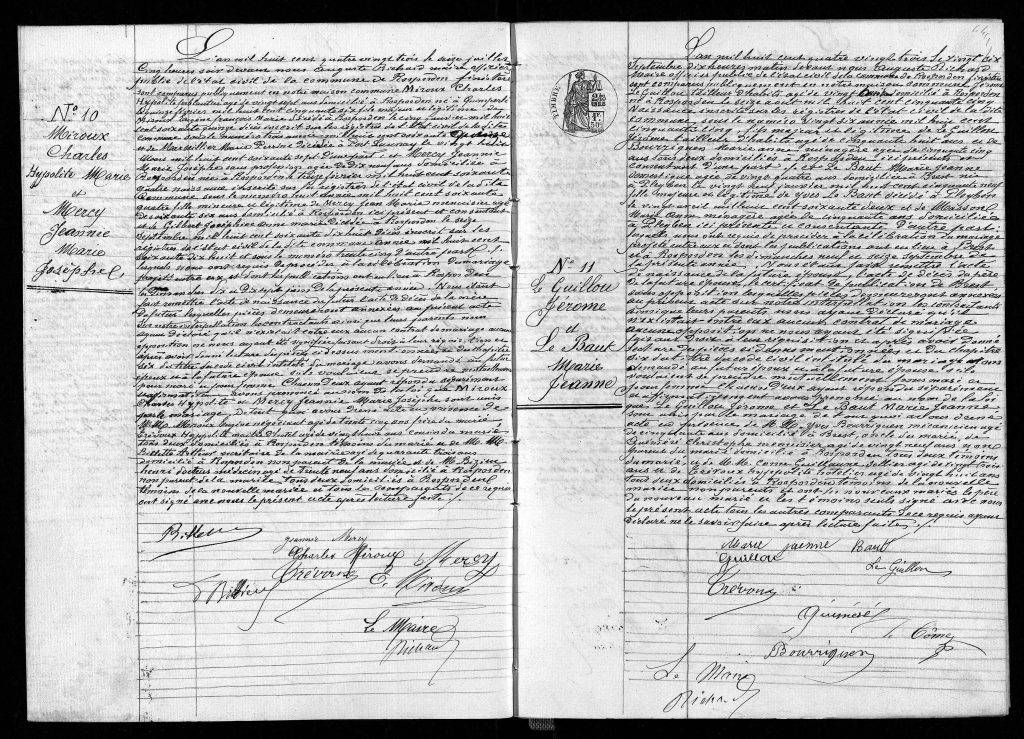 Acte de mariage (16 juillet 1883 à Rosporden).