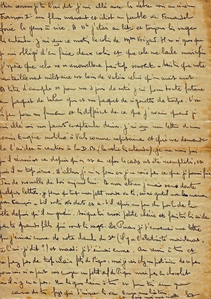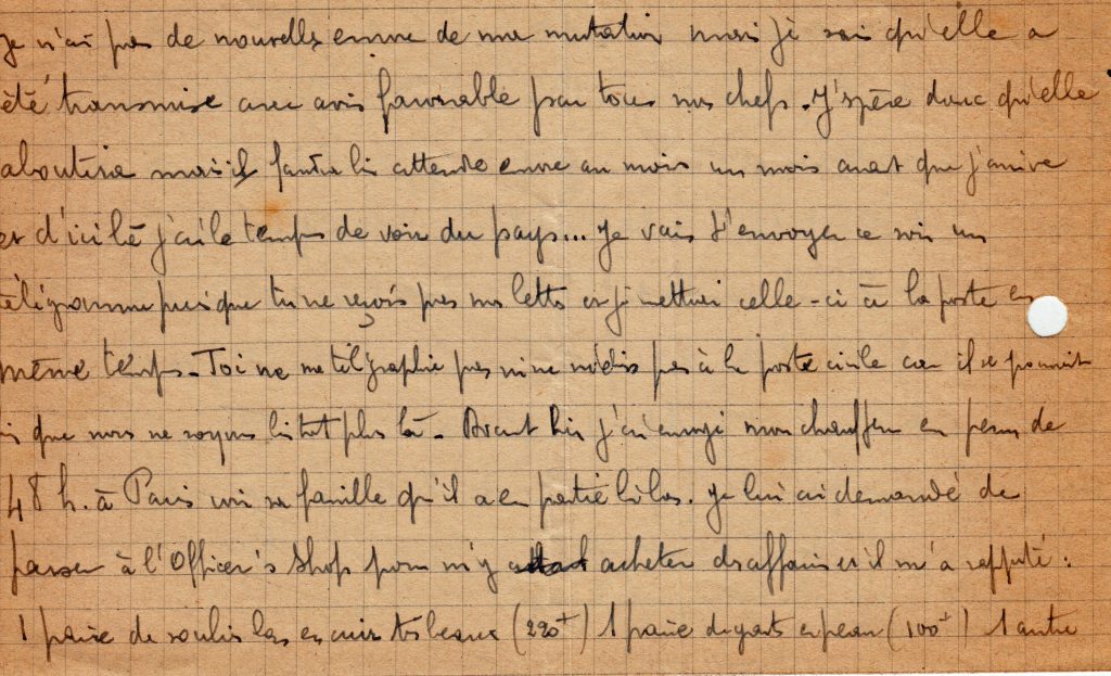 Le 19 mars il écrit une lettre qui est essentiellement pratique. On apprend que sa division changera de corps d’armée à la fin de son repos.
