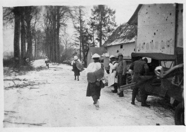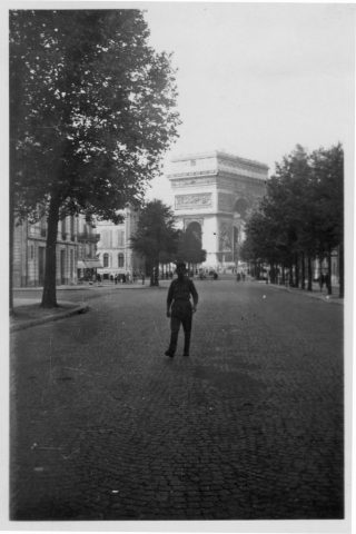 La plupart de ses photos ont été prise en France puis en Allemagne. Il écrit dans une de ses lettres avoir acheté un appareil photo 6×9 à Rouen début septembre 1944. Les photos qu’il a prises sont rassemblées ici, par période, mais on les retrouve aussi dans ses lettres, lorsqu’il en parle ou lorsqu’elles éclairent son propos.